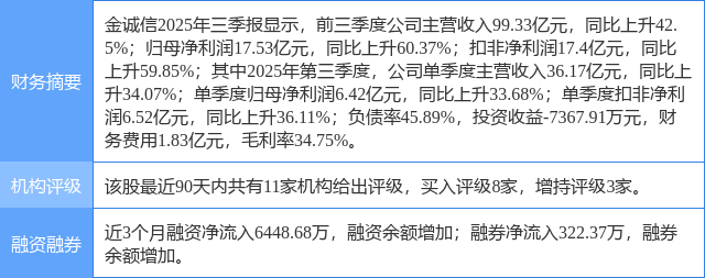 2025年10月29日,民生证券研究员邱祖学,袁浩发布了对金诚信的研报《2025年三季报点评:铜矿产量继续提升,矿服逐季改善》,该研报对金诚信给出“买入”评级。研报中预计2025-2027年公司归母净利润为23.42、27.45、32.79亿元,对应10月29日股价的PE分别为18/15/13X,维持“推荐”评级。证券之星数据中心根据近三年发布的研报数据计算,该研报作者对此股的盈利预测准确度为96.24%。