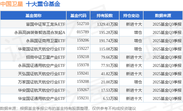 根据2025基金Q3季报公募基金重仓股数据,重仓该股的公募基金共15家,其中持有数量最多的公募基金为富国基金的富国中证军工龙头ETF。富国中证军工龙头ETF目前规模为146.9亿元,最新净值0.6556(12月3日),较上一交易日下跌1.5%,近一年上涨3.47%。该公募基金现任基金经理为王乐乐 牛志冬。王乐乐在任的基金产品包括:富国中证消费50ETF,管理时间为2019年10月14日至今,期间收益率为20.51%;富国中证科技50策略ETF,管理时间为2019年11月15日至今,期间收益率为76.93%;富国中证科技50策略ETF联接A,管理时间为2020年2月20日至今,期间收益率为34.09%。牛志冬在任的基金产品包括:富国中证移动互联网指数(LOF)A,管理时间为2015年5月13日至今,期间收益率为-7.79%;富国中证医药主题指数增强A,管理时间为2016年11月11日至今,期间收益率为43.1%;富国中证娱乐主题指数增强(LOF)A,管理时间为2017年3月13日至今,期间收益率为-22.42%;