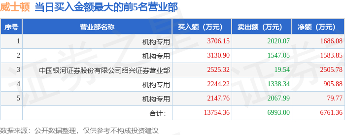 证券小知识:龙虎榜是交易所披露的竞价交易公开信息,现身龙虎榜的个股都是当日最为活跃的个股,是投资者日常重点关注的数据。交易所公布当日买入金额和卖出金额前五名的席位,其中一些席位代表特殊意义,如机构专用席位是指基金专用席位、券商自营专用席位、社保专用席位、券商理财专用席位、保险机构专用席位、保险机构租用席位、QFII专用席位等机构投资者买卖证券的专用通道和席位。深股通专用、沪股通专用为北向资金的交易席位。从龙虎榜数据可以发现和研究机构、游资和散户的资金动向。一些营业部席位经常上榜,市场知名度较高,投资者整理代表散户、游资、量化等不同资金的营业部席位。