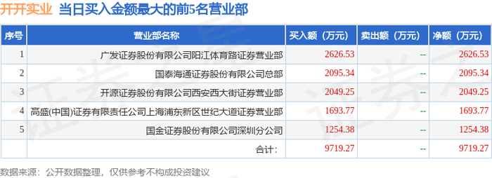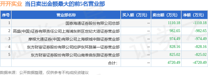 证券之星消息,沪深交易所2025年12月4日公布的交易公开信息显示,开开实业(600272)因有价格涨跌幅限制的日换手率达到20%的前五只证券登上龙虎榜。此次是近5个交易日内第2次上榜。