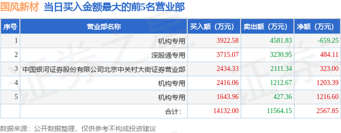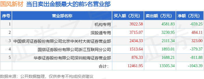 证券之星消息,沪深交易所2025年12月4日公布的交易公开信息显示,国风新材(000859)因日跌幅偏离值达到7%的前5只证券登上龙虎榜。此次是近5个交易日内第3次上榜。