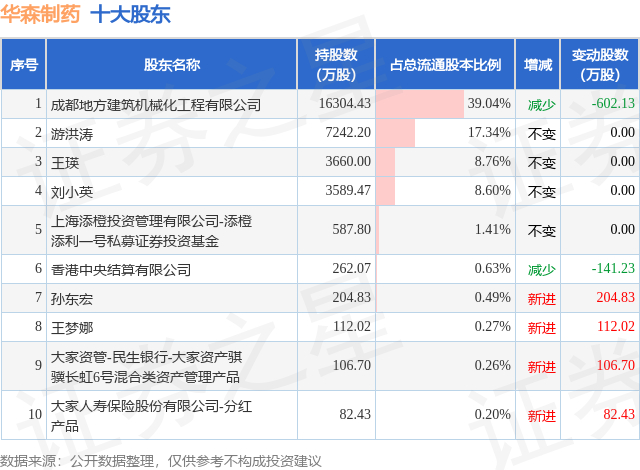 根据华森制药2025年三季报公布的十大股东详情如下:
