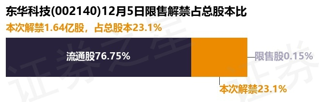 证券之星消息,根据市场公开信息整理,东华科技(002140)于12月5日将有1.64亿股限售股份解禁,为公司定向增发机构配售股份,占公司总股本23.1%。(本次数据根据历史公告整理得出,实际情况以上市公司最新公告为准)最近一年内,该股累计解禁220.12万股,占总股本的0.31%。本次解禁后,公司还有105.25万股限售股份,占总股本0.15%。具体如下图所示: