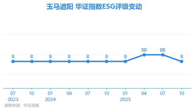 日前,华证指数公布了新一期(2025年10月31日)的ESG评级结果,玉马科技(300993.SZ)获得B评级(华证指数评级为C起至AAA九档,C为最低档,AAA为其最高一级评级/AA为其第二档),上一期(2025年7月31日)ESG评级为BB。本期ESG评级在116家纺织品、服装与奢侈品行业A股上市公司中排名第49(上一期排名第36)。