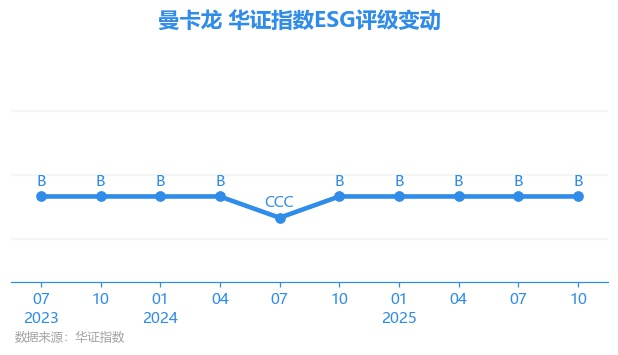 日前,华证指数公布了新一期(2025年10月31日)的ESG评级结果,曼卡龙(300945.SZ)获得B评级(华证指数评级为C起至AAA九档,C为最低档,AAA为其最高一级评级/AA为其第二档),上一期(2025年7月31日)ESG评级为B。本期ESG评级在116家纺织品、服装与奢侈品行业A股上市公司中排名第53(上一期排名第50)。