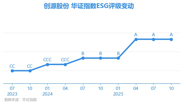 日前,华证指数公布了新一期(2025年10月31日)的ESG评级结果,创源股份(300703.SZ)获得A评级(华证指数评级为C起至AAA九档,C为最低档,AAA为其最高一级评级/AA为其第二档),上一期(2025年7月31日)ESG评级为A。本期ESG评级在30家休闲设备与用品行业A股上市公司中排名第1(上一期排名第1)。