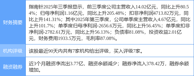 2025年10月25日,东吴证券研究员孙婷,武欣姝发布了对指南针的研报《2025年三季报点评:各项业务稳健发展》,该研报对指南针给出“买入”评级。研报中预计2025-2027年公司归母净利润分别为2.83/3.78/4.98亿元,对应PE分别为336/252/191倍,维持公司“买入”评级,期待麦高证券的发展,看好公司长期成长性。证券之星数据中心根据近三年发布的研报数据计算,该研报作者对此股的盈利预测准确度为67.33%。