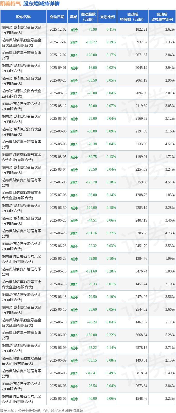 该股近半年内有股东持股变动,合计净减持2398.09万股,股东增减持明细如下表: