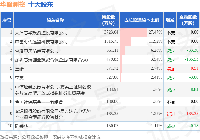 根据华峰测控2025年三季报公布的十大股东详情如下: