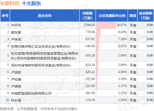 根据长联科技2025年三季报公布的十大股东详情如下: