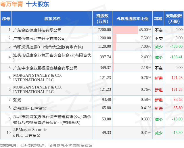 根据粤万年青2025年三季报公布的十大股东详情如下: