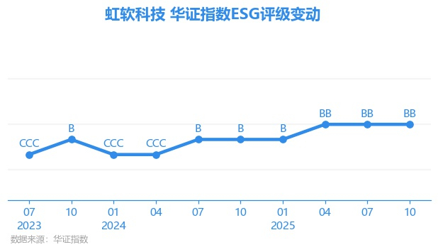 日前,华证指数公布了新一期(2025年10月31日)的ESG评级结果,虹软科技(688088.SH)获得BB评级(华证指数评级为C起至AAA九档,C为最低档,AAA为其最高一级评级/AA为其第二档),上一期(2025年7月31日)ESG评级为BB。本期ESG评级在165家软件行业A股上市公司中排名第45(上一期排名第49)。