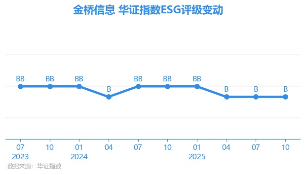 日前,华证指数公布了新一期(2025年10月31日)的ESG评级结果,金桥信息(603918.SH)获得B评级(华证指数评级为C起至AAA九档,C为最低档,AAA为其最高一级评级/AA为其第二档),上一期(2025年7月31日)ESG评级为B。本期ESG评级在155家信息技术服务行业A股上市公司中排名第70(上一期排名第74)。