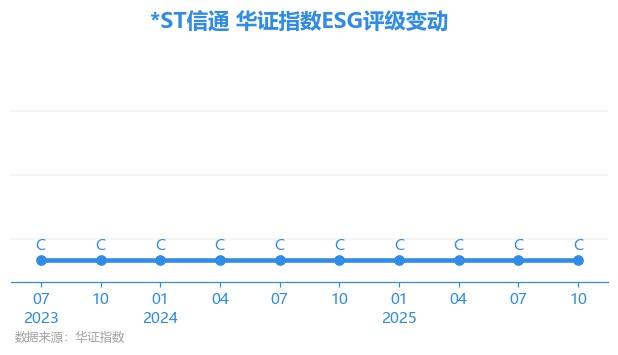 日前,华证指数公布了新一期(2025年10月31日)的ESG评级结果,ST信通(600289.SH)获得C评级(华证指数评级为C起至AAA九档,C为最低档,AAA为其最高一级评级/AA为其第二档),上一期(2025年7月31日)ESG评级为C。本期ESG评级在155家信息技术服务行业A股上市公司中排名第147(上一期排名第133)。