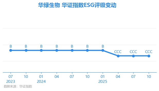 日前,华证指数公布了新一期(2025年10月31日)的ESG评级结果,华绿生物(300970.SZ)获得CCC评级(华证指数评级为C起至AAA九档,C为最低档,AAA为其最高一级评级/AA为其第二档),上一期(2025年7月31日)ESG评级为CCC。本期ESG评级在168家食品行业A股上市公司中排名第70(上一期排名第68)。