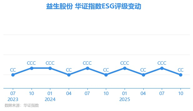 日前,华证指数公布了新一期(2025年10月31日)的ESG评级结果,益生股份(002458.SZ)获得CC评级(华证指数评级为C起至AAA九档,C为最低档,AAA为其最高一级评级/AA为其第二档),上一期(2025年7月31日)ESG评级为CCC。本期ESG评级在168家食品行业A股上市公司中排名第99(上一期排名第82)。
