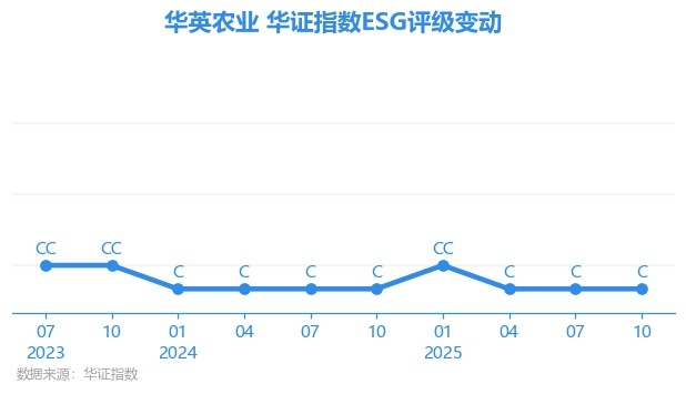 日前,华证指数公布了新一期(2025年10月31日)的ESG评级结果,华英农业(002321.SZ)获得C评级(华证指数评级为C起至AAA九档,C为最低档,AAA为其最高一级评级/AA为其第二档),上一期(2025年7月31日)ESG评级为C。本期ESG评级在168家食品行业A股上市公司中排名第156(上一期排名第137)。