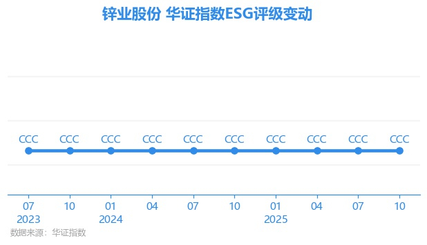日前,华证指数公布了新一期(2025年10月31日)的ESG评级结果,锌业股份(000751.SZ)获得CCC评级(华证指数评级为C起至AAA九档,C为最低档,AAA为其最高一级评级/AA为其第二档),上一期(2025年7月31日)ESG评级为CCC。本期ESG评级在206家金属与采矿行业A股上市公司中排名第155(上一期排名第155)。