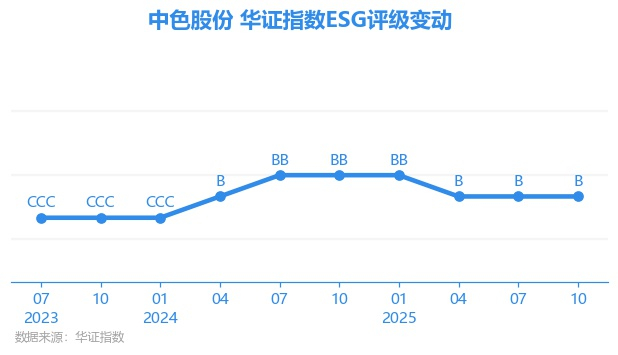 日前,华证指数公布了新一期(2025年10月31日)的ESG评级结果,中色股份(000758.SZ)获得B评级(华证指数评级为C起至AAA九档,C为最低档,AAA为其最高一级评级/AA为其第二档),上一期(2025年7月31日)ESG评级为B。本期ESG评级在206家金属与采矿行业A股上市公司中排名第113(上一期排名第110)。