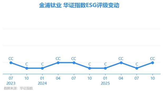 日前,华证指数公布了新一期(2025年10月31日)的ESG评级结果,金浦钛业(000545.SZ)获得CC评级(华证指数评级为C起至AAA九档,C为最低档,AAA为其最高一级评级/AA为其第二档),上一期(2025年7月31日)ESG评级为C。本期ESG评级在494家化学制品行业A股上市公司中排名第462(上一期排名第443)。