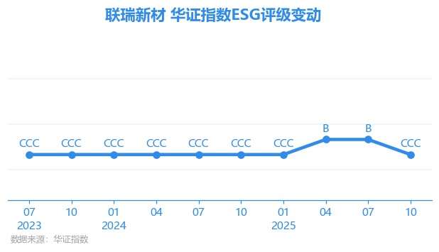 日前,华证指数公布了新一期(2025年10月31日)的ESG评级结果,联瑞新材(688300.SH)获得CCC评级(华证指数评级为C起至AAA九档,C为最低档,AAA为其最高一级评级/AA为其第二档),上一期(2025年7月31日)ESG评级为B。本期ESG评级在494家化学制品行业A股上市公司中排名第280(上一期排名第232)。