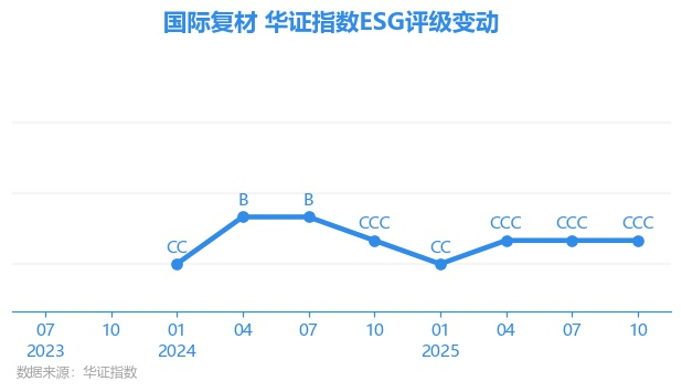 日前,华证指数公布了新一期(2025年10月31日)的ESG评级结果,国际复材(301526.SZ)获得CCC评级(华证指数评级为C起至AAA九档,C为最低档,AAA为其最高一级评级/AA为其第二档),上一期(2025年7月31日)ESG评级为CCC。本期ESG评级在43家建筑材料行业A股上市公司中排名第27(上一期排名第26)。