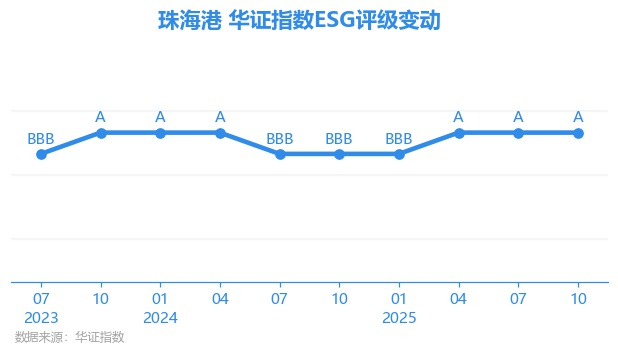 日前,华证指数公布了新一期(2025年10月31日)的ESG评级结果,珠海港(000507.SZ)获得A评级(华证指数评级为C起至AAA九档,C为最低档,AAA为其最高一级评级/AA为其第二档),上一期(2025年7月31日)ESG评级为A。本期ESG评级在34家航空货运与物流行业A股上市公司中排名第10(上一期排名第5)。