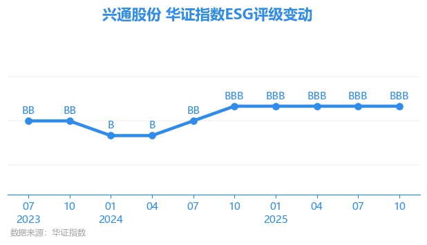 日前,华证指数公布了新一期(2025年10月31日)的ESG评级结果,兴通股份(603209.SH)获得BBB评级(华证指数评级为C起至AAA九档,C为最低档,AAA为其最高一级评级/AA为其第二档),上一期(2025年7月31日)ESG评级为BBB。本期ESG评级在16家海上运输行业A股上市公司中排名第4(上一期排名第4)。