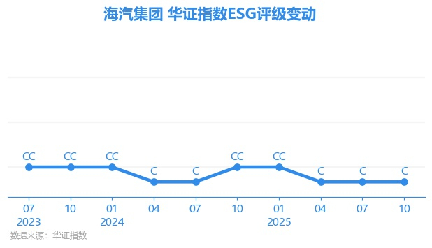 日前,华证指数公布了新一期(2025年10月31日)的ESG评级结果,海汽集团(603069.SH)获得C评级(华证指数评级为C起至AAA九档,C为最低档,AAA为其最高一级评级/AA为其第二档),上一期(2025年7月31日)ESG评级为C。本期ESG评级在22家地面运输行业A股上市公司中排名第19(上一期排名第19)。