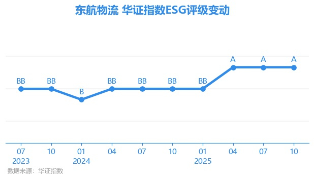日前,华证指数公布了新一期(2025年10月31日)的ESG评级结果,东航物流(601156.SH)获得A评级(华证指数评级为C起至AAA九档,C为最低档,AAA为其最高一级评级/AA为其第二档),上一期(2025年7月31日)ESG评级为A。本期ESG评级在34家航空货运与物流行业A股上市公司中排名第4(上一期排名第6)。