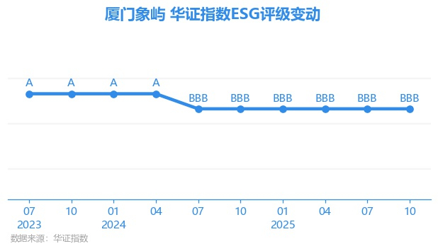 日前,华证指数公布了新一期(2025年10月31日)的ESG评级结果,厦门象屿(600057.SH)获得BBB评级(华证指数评级为C起至AAA九档,C为最低档,AAA为其最高一级评级/AA为其第二档),上一期(2025年7月31日)ESG评级为BBB。本期ESG评级在34家航空货运与物流行业A股上市公司中排名第12(上一期排名第13)。