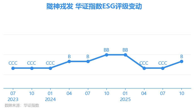 日前,华证指数公布了新一期(2025年10月31日)的ESG评级结果,陇神戎发(300534.SZ)获得B评级(华证指数评级为C起至AAA九档,C为最低档,AAA为其最高一级评级/AA为其第二档),上一期(2025年7月31日)ESG评级为CCC。本期ESG评级在266家制药行业A股上市公司中排名第181(上一期排名第195)。