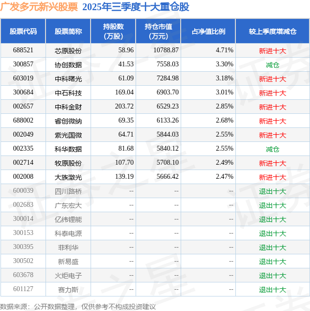 根据2025基金Q3季报公募基金重仓股数据,重仓该股的公募基金共3家,其中持有数量最多的公募基金为广发基金的广发多元新兴股票。广发多元新兴股票目前规模为22.9亿元,最新净值1.898(12月5日),较上一交易日上涨0.9%,近一年上涨19.81%。该公募基金现任基金经理为周智硕。周智硕在任的基金产品包括:广发稳健增长混合A,管理时间为2025年8月28日至今,期间收益率为5.11%;广发行业严选三年持有期混合A,管理时间为2025年9月13日至今,期间收益率为-6.13%。