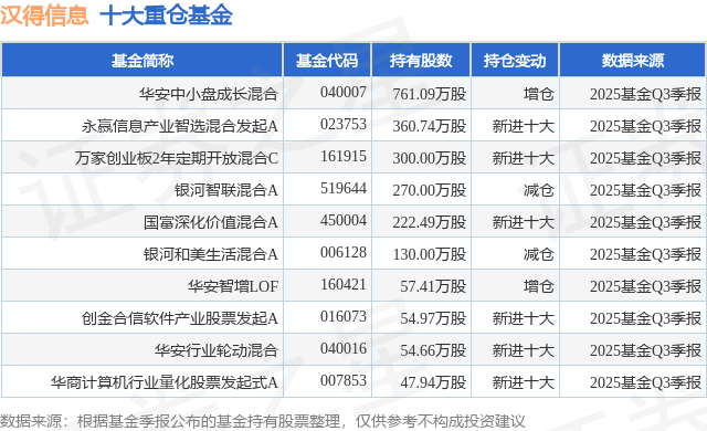 根据2025基金Q3季报公募基金重仓股数据,重仓该股的公募基金共23家,其中持有数量最多的公募基金为华安基金的华安中小盘成长混合。华安中小盘成长混合目前规模为20.0亿元,最新净值2.9403(12月5日),较上一交易日上涨1.52%,近一年上涨5.38%。该公募基金现任基金经理为金拓。金拓在任的基金产品包括:华安智增精选混合,管理时间为2023年10月23日至今,期间收益率为12.69%;华安景气回报混合发起式A,管理时间为2024年9月19日至今,期间收益率为14.69%;