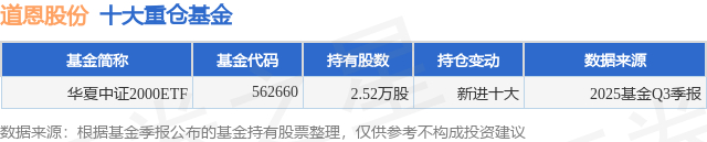 根据2025基金Q3季报公募基金重仓股数据,重仓该股的公募基金共1家,其中持有数量最多的公募基金为华夏基金的华夏中证2000ETF。华夏中证2000ETF目前规模为2.27亿元,最新净值1.669(12月5日),较上一交易日上涨1.77%,近一年上涨39.33%。该公募基金现任基金经理为鲁亚运 陈国峰。鲁亚运在任的基金产品包括:华夏创业板成长ETF联接A,管理时间为2022年6月10日至今,期间收益率为-0.84%;华夏中证全指证券公司ETF联接A,管理时间为2022年6月10日至今,期间收益率为28.64%;华夏国证疫苗与生物科技指数发起A,管理时间为2022年9月6日至今,期间收益率为-32.59%;华夏战略新兴成指ETF联接A,管理时间为2023年3月27日至今,期间收益率为27.24%。陈国峰在任的基金产品包括:华夏中证800指数增强A,管理时间为2023年3月30日至今,期间收益率为16.93%;华夏中证A500增强策略ETF,管理时间为2025年8月6日至今,期间收益率为9.96%;华夏中证2000ETF发起式联接A,管理时间为2025年9月9日至今,期间收益率为3.5%。