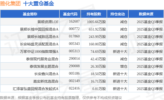 重仓雅化集团的前十大公募基金请见下表: