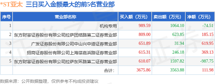 证券之星消息,沪深交易所2025年12月8日公布的交易公开信息显示,*ST亚太(000691)因连续三个交易日内,跌幅偏离值累计达到12%的ST证券、*ST证券和未完成股改证券登上龙虎榜。此次是近5个交易日内第2次上榜。
