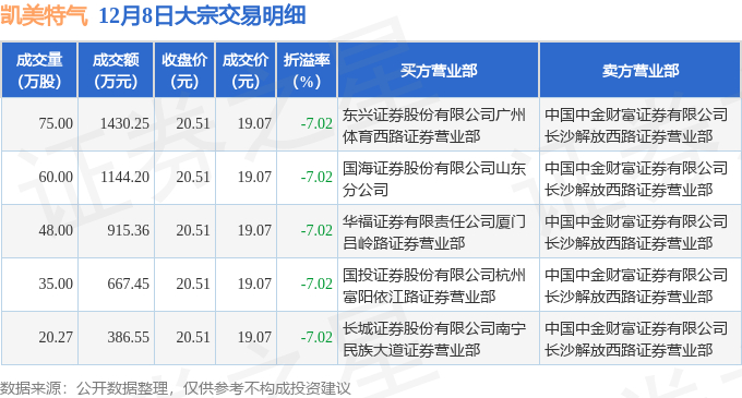 证券之星消息,12月8日凯美特气发生大宗交易,交易数据如下: