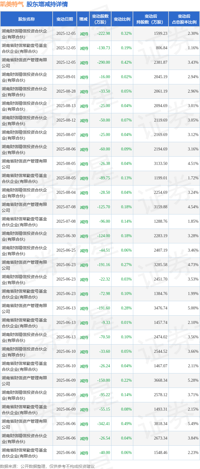 该股近半年内有股东持股变动,合计净减持2715.1万股,股东增减持明细如下表: