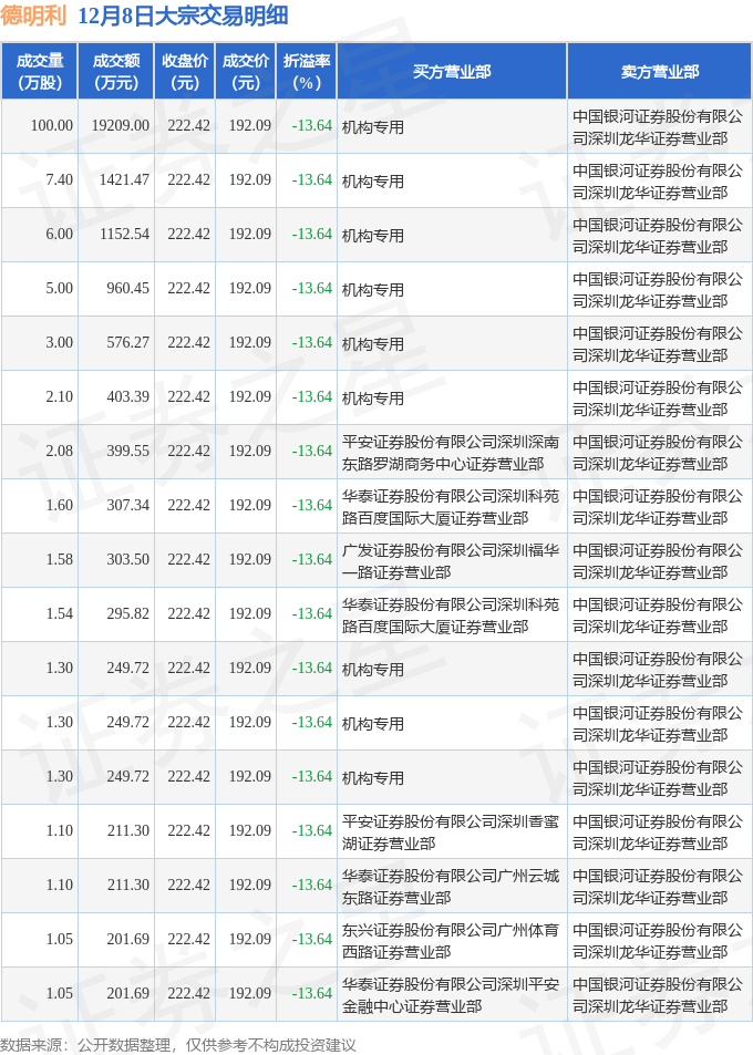 证券之星消息,12月8日德明利发生大宗交易,交易数据如下: