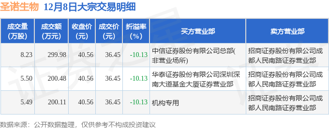 证券之星消息,12月8日圣诺生物发生大宗交易,交易数据如下: