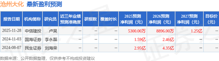 沧州大化2025年三季报显示,前三季度公司主营收入33.61亿元,同比下降10.58%;归母净利润4762.31万元,同比上升124.26%;扣非净利润5016.47万元,同比上升127.92%;其中2025年第三季度,公司单季度主营收入11.16亿元,同比下降7.41%;单季度归母净利润2423.67万元,同比上升406.54%;单季度扣非净利润2464.71万元,同比上升414.38%;负债率27.91%,投资收益-509.56万元,财务费用62.13万元,毛利率7.73%。