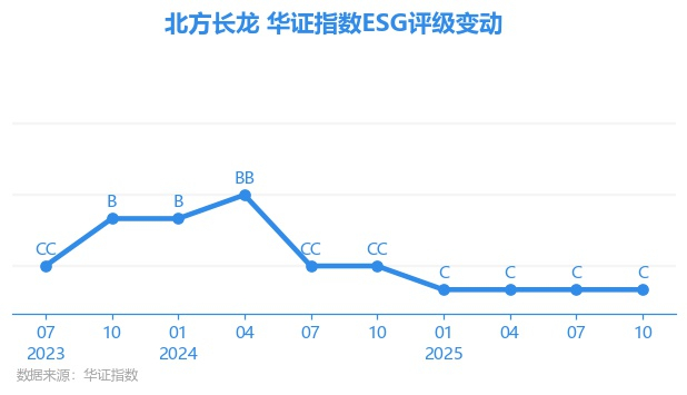 从细项得分来看,北方长龙E项得分59.75,评级为C,行业内排名43/72(E项目评分维度包括气候变化、资源利用、环境污染、环境管理);S项得分69.7,评级为CCC,行业内排名68/72(S项目评分维度包括人力资本、产品责任、供应商、社会贡献);G项得分73.31,评级为B,行业内排名66/72(G项目评分维度包括股东权益、治理结构、信披质量、治理风险、外部处分、商业道德)。
