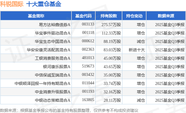 根据2025基金Q3季报公募基金重仓股数据,重仓该股的公募基金共19家,其中持有数量最多的公募基金为易方达基金的易方达裕鑫债券A。易方达裕鑫债券A目前规模为48.99亿元,最新净值1.7346(12月8日),较上一交易日上涨0.2%,近一年上涨16.59%。该公募基金现任基金经理为胡文伯。胡文伯在任的基金产品包括:易方达鑫转招利混合A,管理时间为2023年3月16日至今,期间收益率为18.45%;易方达磐固六个月持有期混合A,管理时间为2023年6月21日至今,期间收益率为6.32%。
