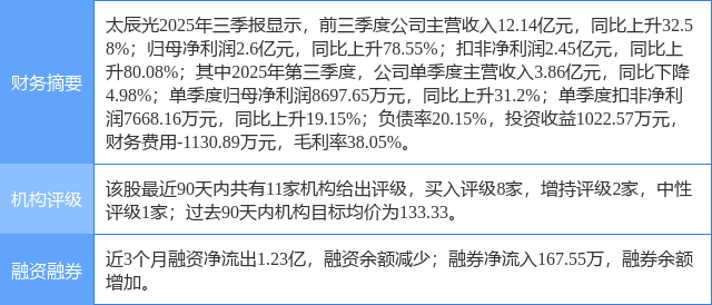今日太辰光(300570)涨6.79%,收盘报127.88元。