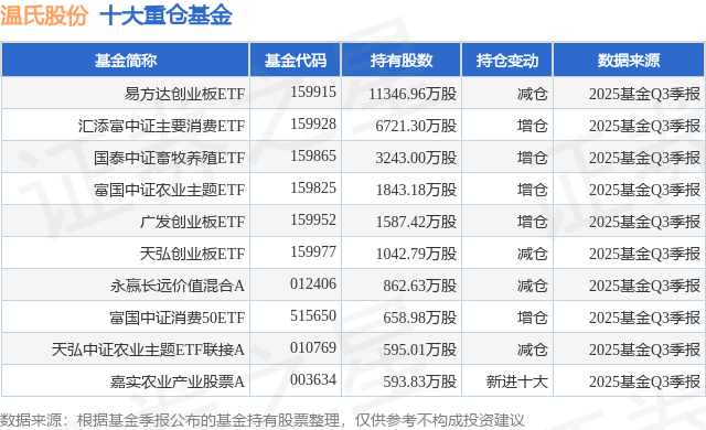 根据2025基金Q3季报公募基金重仓股数据,重仓该股的公募基金共118家,其中持有数量最多的公募基金为易方达基金的易方达创业板ETF。易方达创业板ETF目前规模为102.0亿元,最新净值3.1708(12月8日),较上一交易日上涨2.61%,近一年上涨42.58%。该公募基金现任基金经理为成曦 刘树荣。成曦在任的基金产品包括:易方达创业板ETF联接A,管理时间为2016年5月7日至今,期间收益率为48.85%;易方达深证100ETF,管理时间为2016年5月7日至今,期间收益率为83.11%;易方达上证科创板50成份ETF,管理时间为2020年9月28日至今,期间收益率为-4.47%。刘树荣在任的基金产品包括:易方达深证100ETF联接A,管理时间为2017年7月18日至今,期间收益率为61.99%;易方达创业板ETF联接A,管理时间为2017年7月18日至今,期间收益率为84.8%;易方达深证100ETF,管理时间为2017年7月18日至今,期间收益率为61.65%;