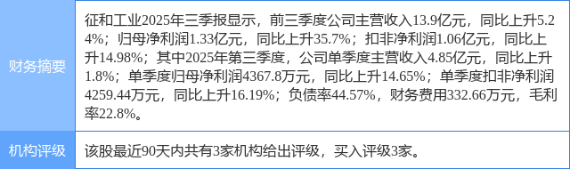 2025年9月9日,中邮证券研究员刘卓,陈基赟发布了对征和工业的研报《业绩稳健增长,静待高端市场放量》,该研报对征和工业给出“买入”评级。研报中预计公司2025-2027年营收分别为19.86、22.51、25.24亿元,同比增速分别为8.22%、13.35%、12.14%;归母净利润分别为1.70、1.97、2.44亿元,同比增速分别为30.10%、15.71%、23.55%。公司2025-2027年业绩对应PE估值分别为23.03、19.90、16.11,维持“买入”评级。证券之星数据中心根据近三年发布的研报数据计算,该研报作者对此股的盈利预测准确度为59.41%。