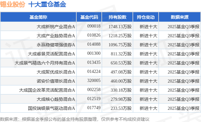 重仓锡业股份的前十大公募基金请见下表: