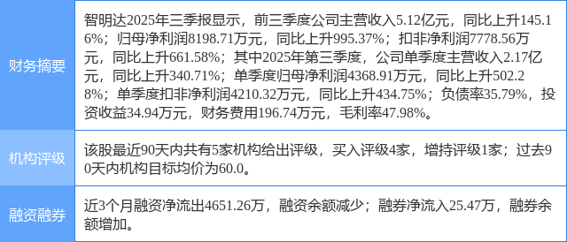 2025年10月29日,太平洋研究员马浩然发布了对智明达的研报《产品订单大幅增长,充分受益下游高景气》,该研报对智明达给出“买入”评级,认为其目标价为60.0元,现价距离目标价尚有54.08%的涨幅空间。研报中预计公司2025-2027年的净利润为1.10亿元、1.49亿元、1.87亿元,EPS为0.66元、0.89元、1.11元,对应PE为56倍、41倍、33倍,维持“买入”评级。证券之星数据中心根据近三年发布的研报数据计算,该研报作者对此股的盈利预测准确度为35.28%。