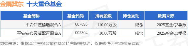 根据2025基金Q3季报公募基金重仓股数据,重仓该股的公募基金共2家,其中持有数量最多的公募基金为平安基金的平安估值精选混合A。平安估值精选混合A目前规模为0.59亿元,最新净值1.1582(12月8日),较上一交易日下跌0.59%,近一年上涨0.37%。该公募基金现任基金经理为王博。王博在任的基金产品包括:平安均衡优选1年持有混合A,管理时间为2024年2月28日至今,期间收益率为11.76%;平安安心灵活配置混合A,管理时间为2024年12月27日至今,期间收益率为2.02%;平安发现价值混合A,管理时间为2025年11月19日至今,期间收益率为nan%。